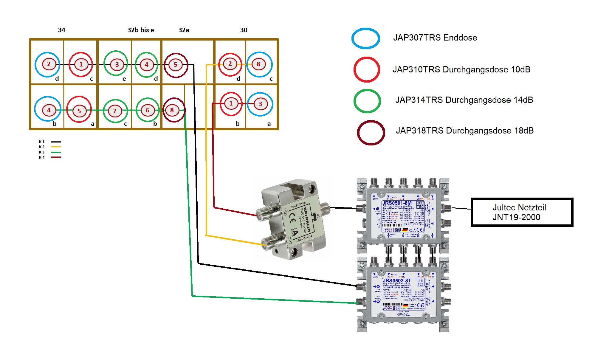 Und jetzt zu den ID-Verteilung der JAP-Antennendosen für diesen Aufbau: