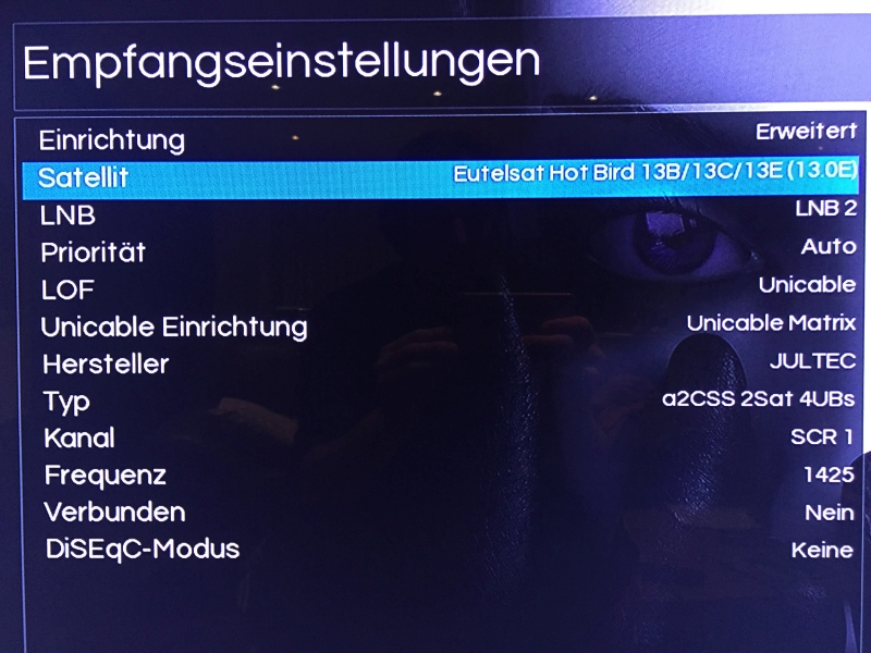 Beppo hat geschrieben:Die Unicable Einstellungen am Receiver sind wie folgt: