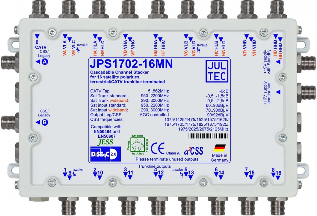 Jultec JPS1702-16MN JESS EN50607 Einkabelumsetzer für 4 Satelliten bzw. im Breitband-LNB Modus 8 Satelliten (2x16 UBs/IDs/Umsetzungen)