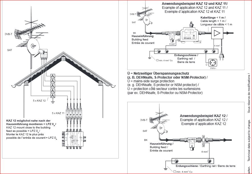 - Zum Schutz der Systemkomponenten in Antennen-Empfangs- und -Verteilanlagen gegen transiente Überspannungen