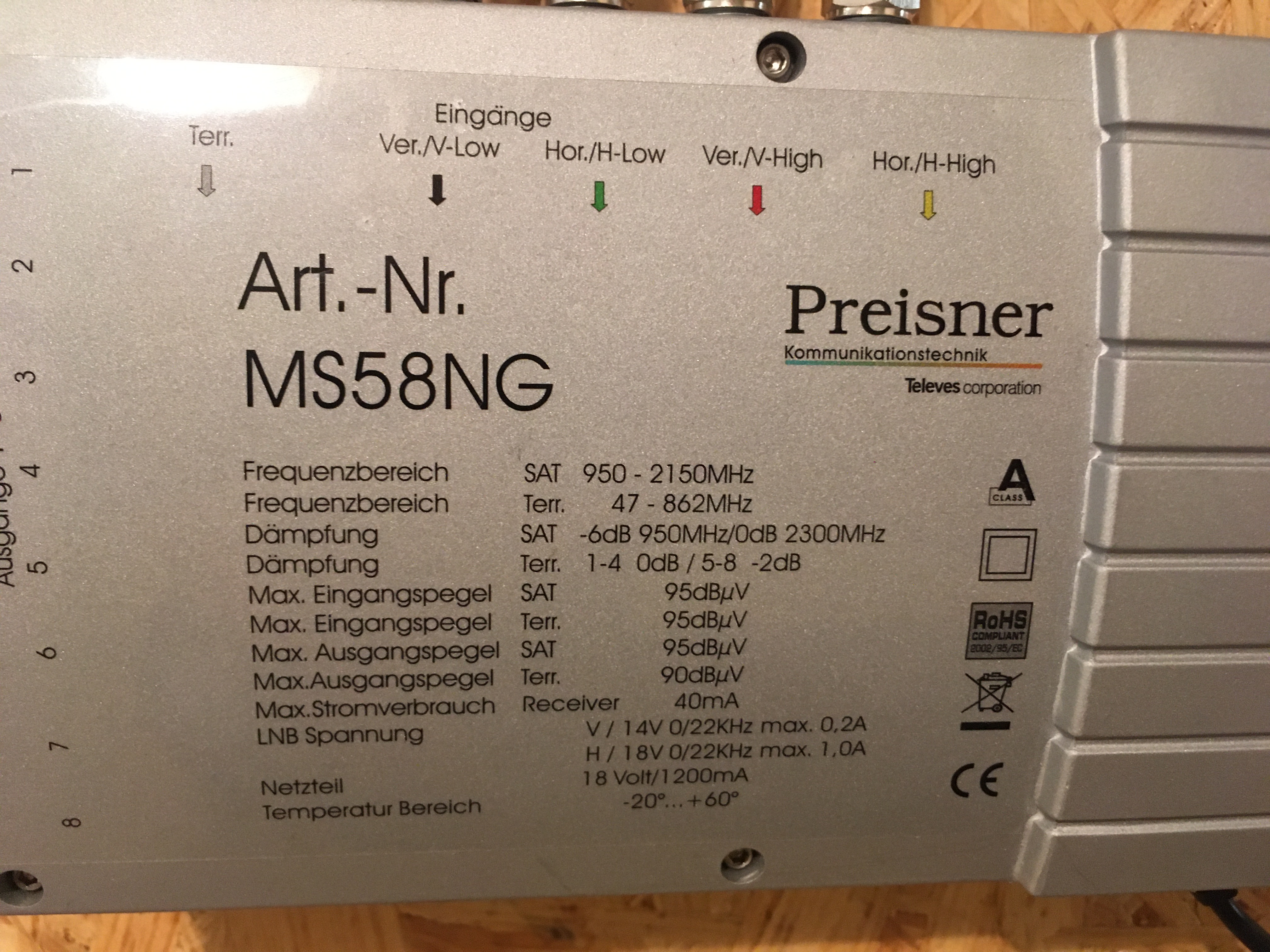 Ein Beitrag bei dem auch ein Preisner/Televes MS58NG vorhanden ist: