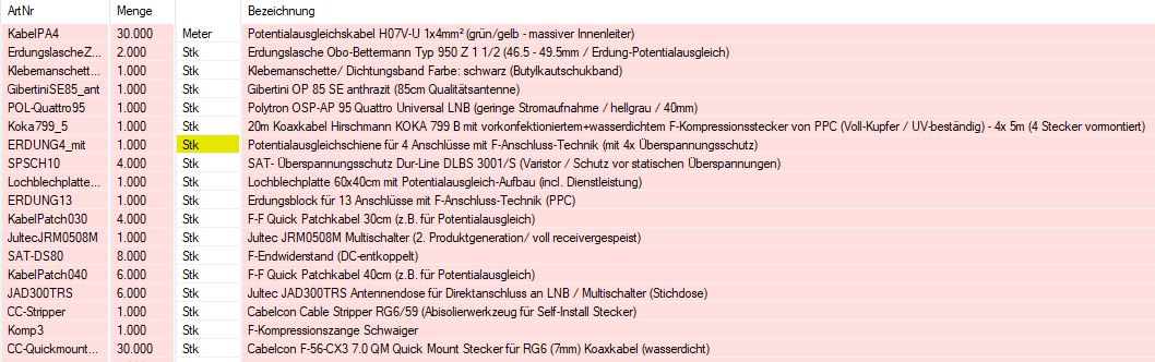 Ach so, dachte das gehörte zum Lieferumfang für die Grundausstattung (Dachsparrenhalter, Erdungskabel, Dachziegel, Abdichtungen, Antenne, LNB).