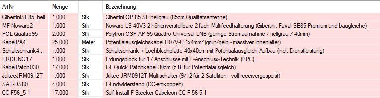Ich soll nun Astra 19.2 ° und Eutelsat 9°Ost sein. Mein Warenkorb dazu wäre folgender: