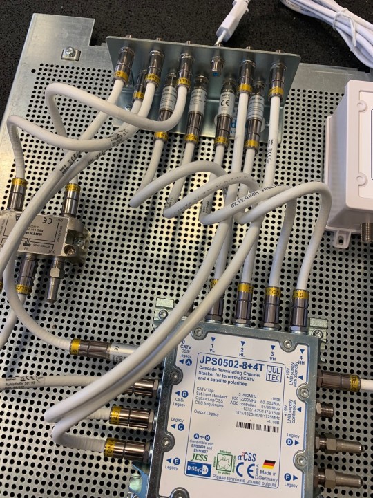 Da reicht ja dann ein Schalter mit nur 2x Unicable-Ausgang wie der JRS0502-4+4T nicht mehr aus, der hat ja insg. nur 2 Unicable-Ausgänge (mit je 4 UBs/Tuner-Versorgungen) + 4x Legacy extra .... die Legacy wären auch alle immer nur für eine Single-Tuner Versorgung gut, da könnte man an diese Anschlüsse nie einen Twin-Receiver (oder gar ein FBC-Frontend Gerät - tag/FBC-Tuner-Versorgung ) mal anschließen und voll versorgen.obermoss hat geschrieben:Hier der genaue Aufbau zum jetzigen Stand:
