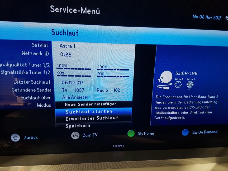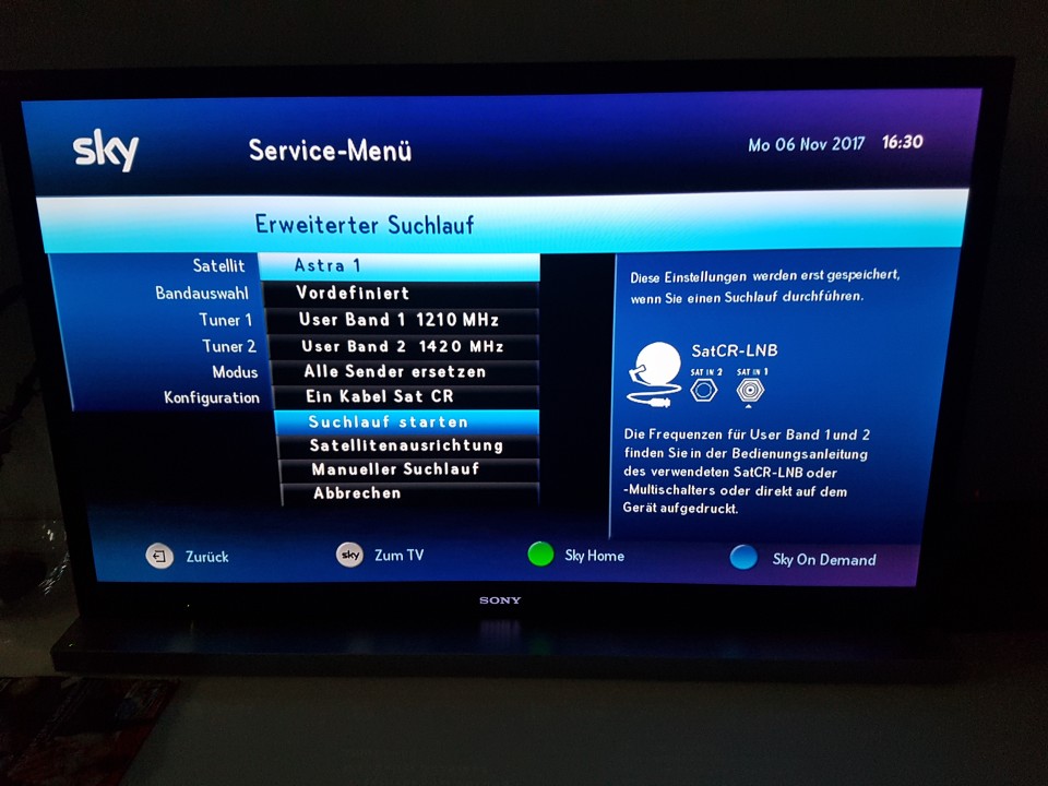 Leider war das Vergnügen nur ca.24 Stunden lang dann gab es auf Unicable kein Signal mehr. Receiver neu gestartet und Signal war wieder da. Später am Abend wieder kein Signal und das blieb auch so. Receiver getauscht leider ohne Erfolg, der Technisat lieferte auch kein Signal (0% Signalstärke + 0% Signalqualität) .