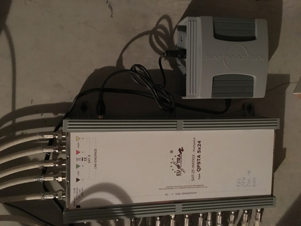 Wir leben in einem 3 Parteien-Reihenhaus und teilen uns die SAT Schüssel auf dem Dach. Der aktuelle Mulitschalter (Eutra QPSTA 5x24, Abbildung anbei) versorgt alle Parteien und vom Keller aus geht die Verkabelung in alle einzelnen Räume aller Parteien. Eine nachträgliche Verkabelung in die Räume ist leider nicht möglich.