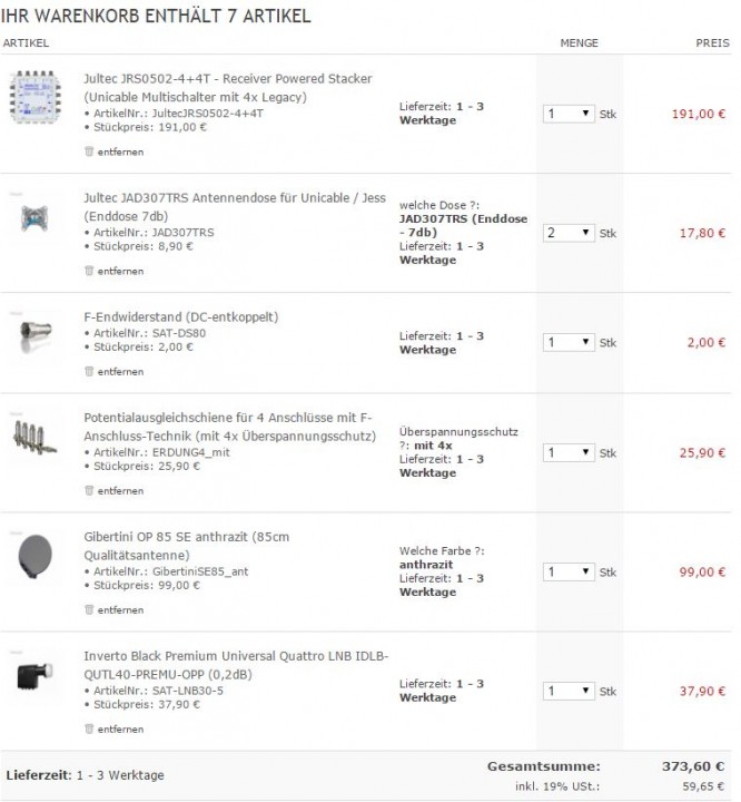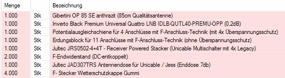 Option C: Gibertini Alu-Antenne OP 85 SE, Inverto Premium Quattro LNB, JULTEC JRM0508T Multischalter
