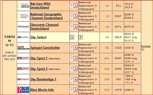 Habe gerade mal die Liste der Sender auf 19,2° überflogen. Da kann man sehr schön sehen, welche Sprachen so alle vertreten sind und auch wie die Zugehörigkeit zu verschiedenen Transpondern ist. So dolle ist das mit dem Fremdsprachenangebot allerdings dort nicht. Dunkel eingefärbte Zeilen kann man vergessen, da die Programme verschlüsselt sein können. Und so mancher Fremdsprachler ist "nur" ein Shoppingsender oder ein religiöses Angebot.prinzix hat geschrieben:Zum Thema internationale Sender: Es geht um die Umrüstung in einem historischen Gebäude, ein "Schüsselwald" kommt nicht in Frage. Hier würde ich mich auf Astra (vorhandene SAT-Anlage) beschränken wollen.
