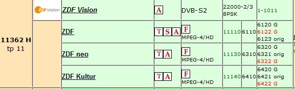 Für meine eigenen Daten hier die akt. Transponder-Daten der eingespeisten Sender: