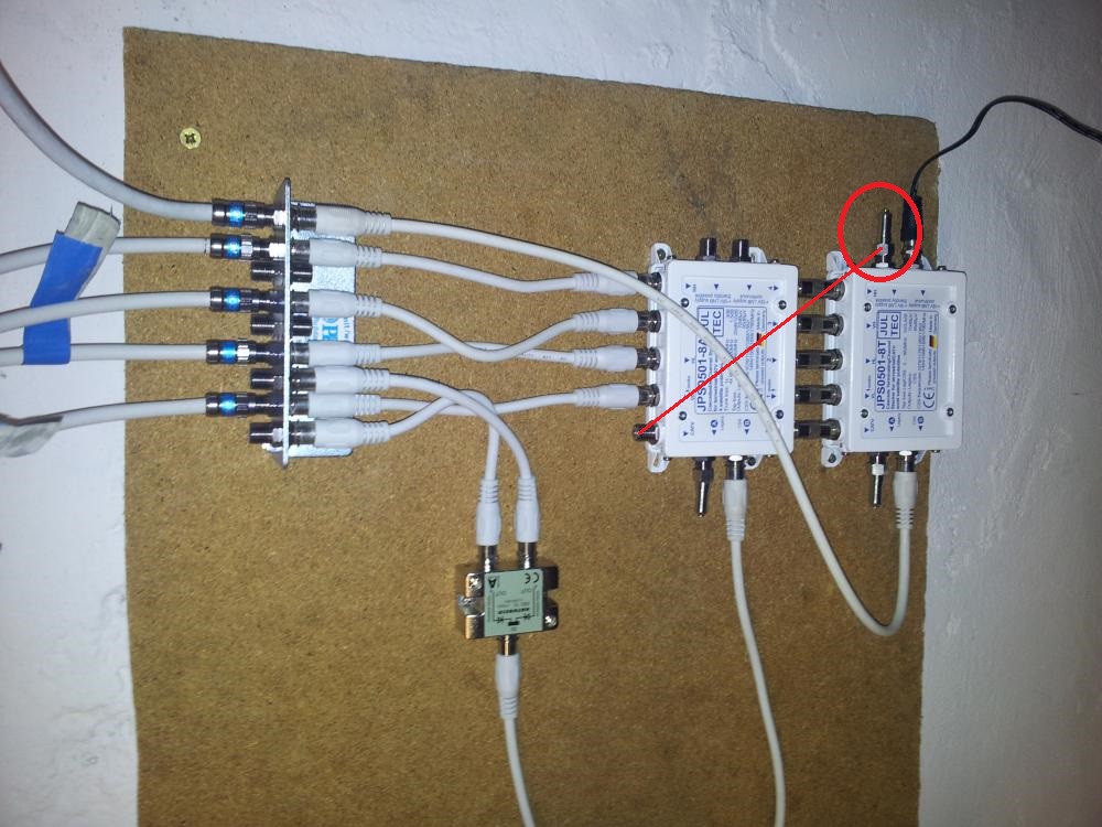 Sie haben einen Strom-Eingang mit einem F-Endwiderstand abgeschlossen (siehe Bild 1), dieser Widerstand gehört an den terrestrischen Eingang (CATV) da dieser unbelegt ist.
