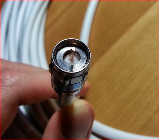 Da ein Self-Install Stecker bzw. auch ein F-Kompressionsstecker hier verwendet ist wurde auch die Abschirmung vor dem Aufsetzen des Steckers jeweils nach hinten umgelegt (darf aber auf keinen Fall hinten am Stecker-Ende raus schauen, also nicht zu lang lassen !).