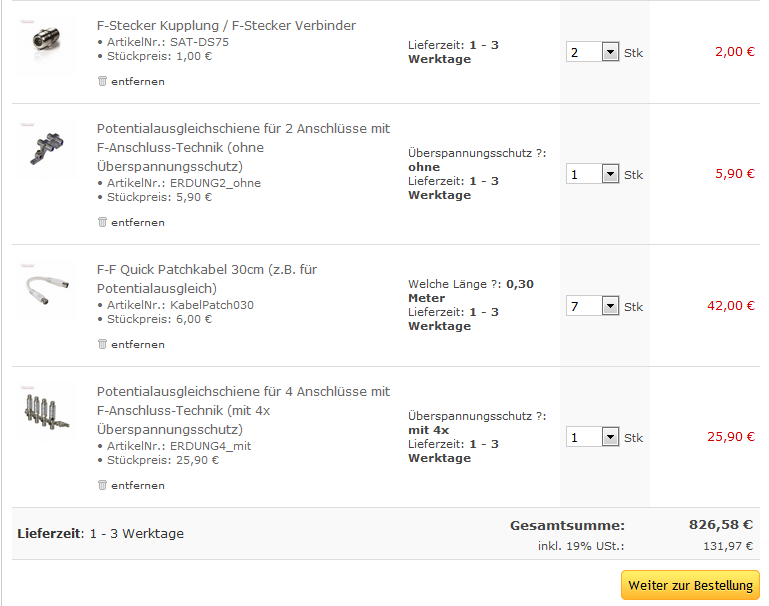 ok, dann lassen wir es bei einem konventionellen Quatto-LNB. Ich habe jetzt die Komponenten auf der Wunschliste noch vervollständigt. Wäre prima, wenn Sie da nochmal einen Blick darauf werfen könnten. Wenn alles passt, würde ich die Sachen bestellen. Was den Aufbau auf dem ...