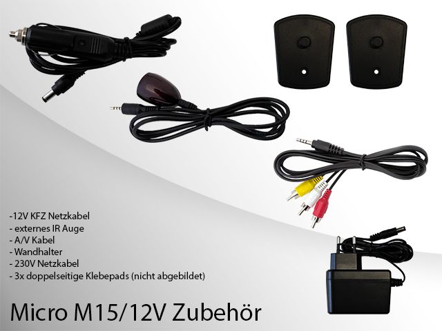 - Micro m15/12 HD EasyFind Satreceiver mini (230V + 12V Zigarettenanzünder-Kabel Betrieb möglich / externes Infrarot-Auge)