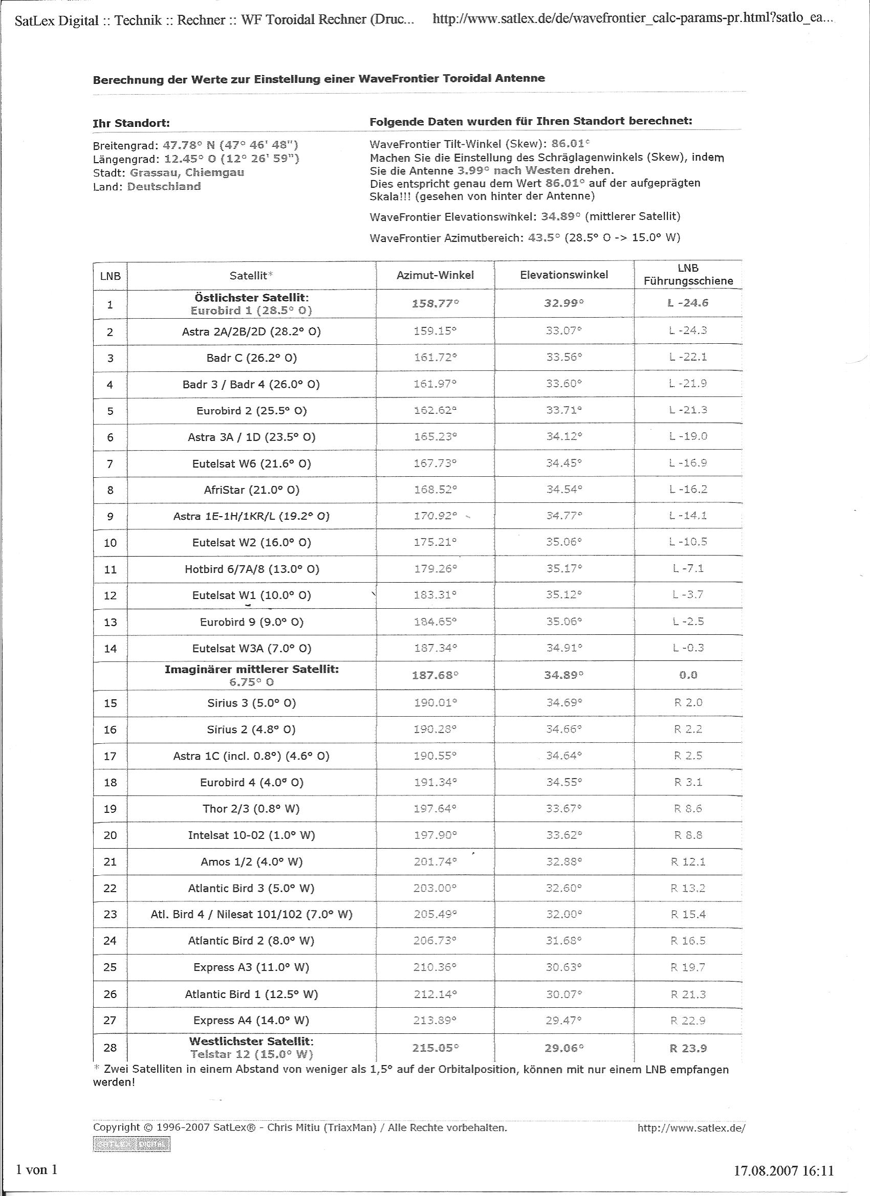 2) die werte zur einstellung lassen sich mit dem programm unter http://www.satlex.de/de/wavefrontier_calc-params.html ermittelt. meine praxis zeigt, dass t90 für die ersten 3 satelliten gut funtioniert, jedoch für telstar12 überhaupt nicht klappen will. kann sein, dass ich etwas falsch gemacht habe?