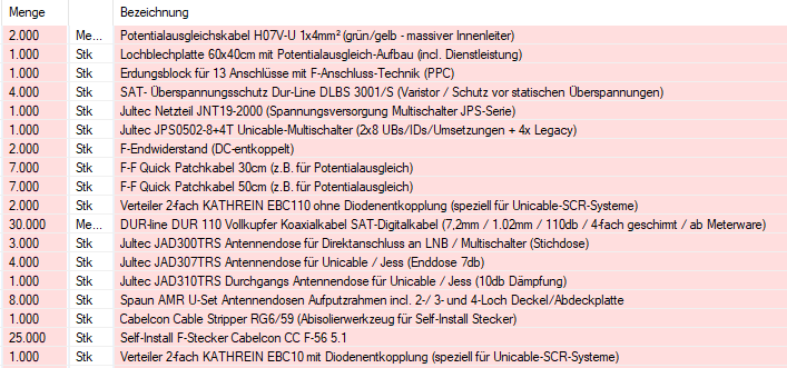 Ja, und das hatte ich in meiner Stückliste oben auch so benannt was zu diesen 7 Leitungen in die Zimmer benötigt wird, das ist der Teil:heini99 hat geschrieben:es gehen doch aktuell 7 Leitungen in die Zimmer (4 x unicable nach den 2 Verteilern + 3 x Legacy + 1 x Kabel vorhanden aber nicht genutzt )