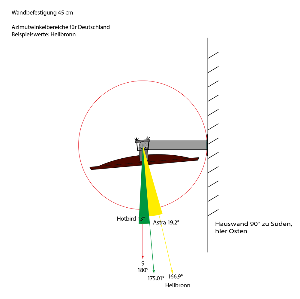http://www.dishpointer.com würde hier sehr helfen um sich davon ein Bild machen zu können (für beide gewünschten Satelliten da eine Abfrage machen und für jeden ein Screenshot einstellen).Eatthis hat geschrieben:Ja, dieser wird auch benötigt. Da die Antenne mittig an der Wand hängen wird, muss der Mast eine Ausladung von mind. 1m haben da die Ausrichtung parallel zur Hauswand erfolgen muss (wegen Satellitenposition).wir ein Mast benötigt