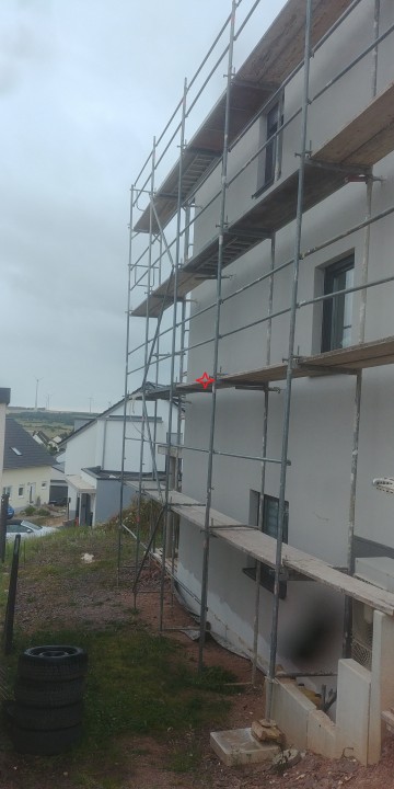 Die Antenne hängt ja nicht direkt vorne an der Ecke vom Haus, die ist ja versetzt nach hintern (und das Bild vom Dishponter wurde sicher nicht mit einem Abstand von 45cm wie es die Wandhalterung wäre gemacht, das ist ja weiter weg gemacht von der Hauswand als das Gerüst breit ist und somit nicht relevant für diese Abmessung der Sache).
