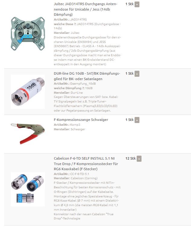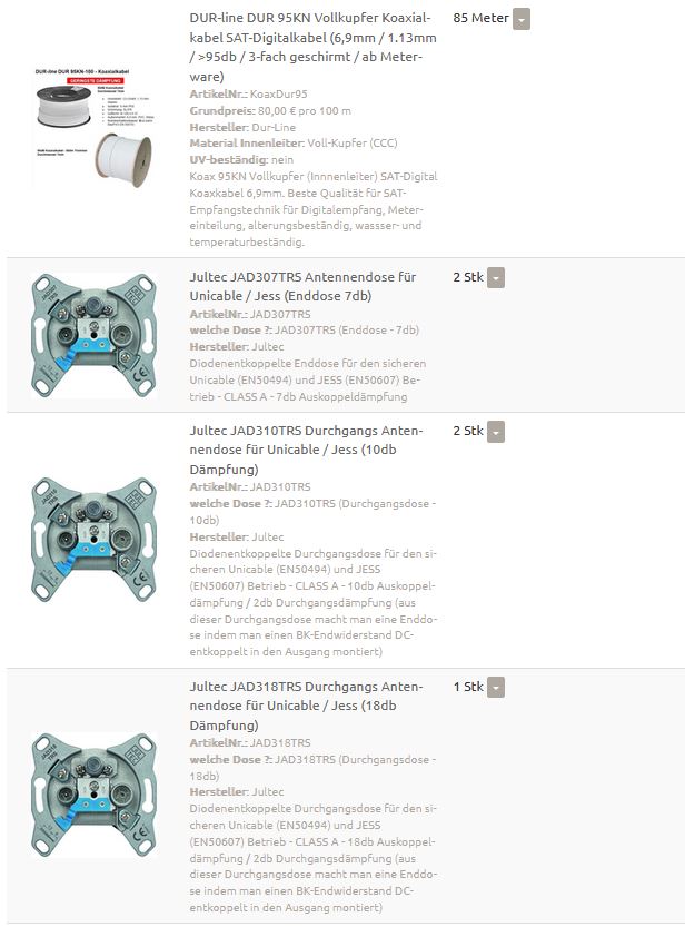 Haben sie Fragen zu Unicable (EN50494/SCR/SatCR/CSS/dCSS) oder JESS (Jultec Enhanced Stacking System - EN50607/SCD2/dCSS2/Unicable2) Multischaltern, zu statischen SAT-Einkabelsystemen oder auch auch zu speziellen Einkabelanlagen wie Dur-Line DCS-/DWB-/DPC-/UKS-Multischalter oder auch zur Johansson Einkabellösung 9640/9645 (Multiband Converter/Stacker-Destacker) bzw. Mini-Routern wie dem Dur-Line UCP 21 ?
