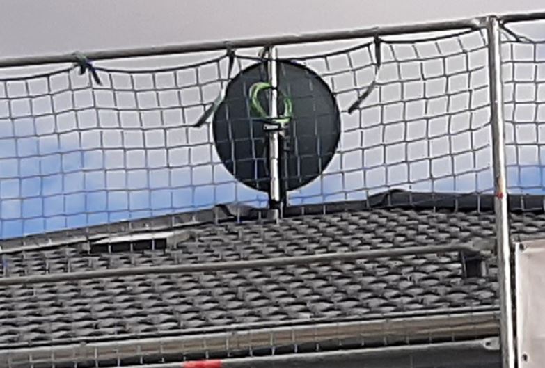Problem ist nun, dass leider die Schüssel 'so hängt', dass die Wetterstation nicht mehr oberhalb der Schüssel am Masten montiert werden kann - siehe Foto