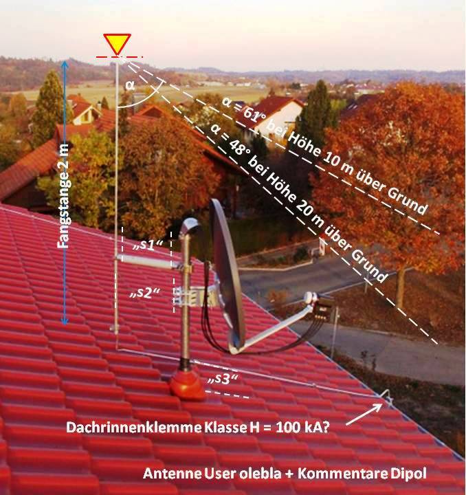 Aber dann ändert sich da nur das der Antennenmast mit in den PA eingezogen werden muss, also das 4mm² von der HES (Haupterdungsschiene) vom Haus eben von unten nach oben geht (über den Erdungsblock rund um den Multischalter-Aufbau => zum Mast-nahen PA => an den durch eine Fangstange dann geschützten Antennenmast). Das 16mm² Erdungskabel an den Antennenmast entfällt dann natürlich ..... der Mast/die Antenne wird ja per Fangstange dann geschützt die an die Haus-Blitzschutzanlage angeschlossen wird.