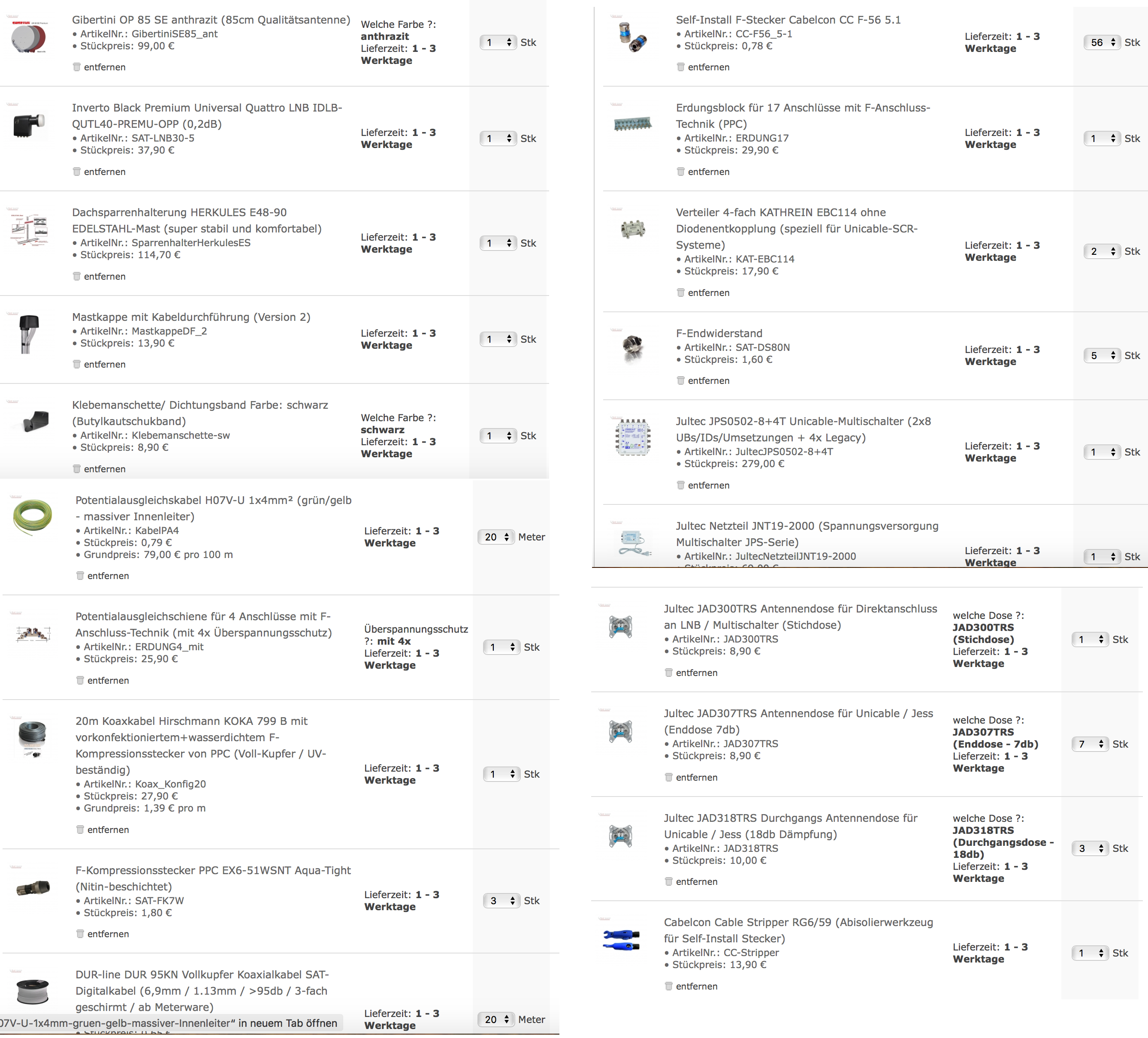 Bei Antenne und LNB könnte ich mir allerdings auch eine günstigere Variante mit guter Qualität vorstellen.