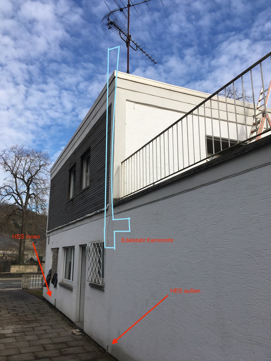 Hallo, Geduld ich bin doch schon da!peterpandora hat geschrieben: 2. März 2022 16:06Wenn mir jetzt @dipol auf die Entfernung freundlicherweise noch seine Einschätzung und ein paar Hinweise bzgl. Leitungsweg über den Kaminschacht geben könnte, dann hätte ich eine konkrete Vorstellung, mit der ich eine entsprechende Fachkraft kontaktieren könnte. Nochmals vielen Dank!![]()