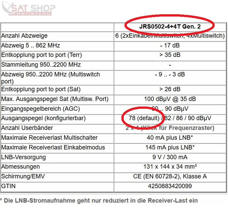 Ist die Annahme "Ausgangspegel Jultec JRS0502-4+4T = 90dBµV" bedingt durch interne Pegelanpassung der JRS-Geräte?