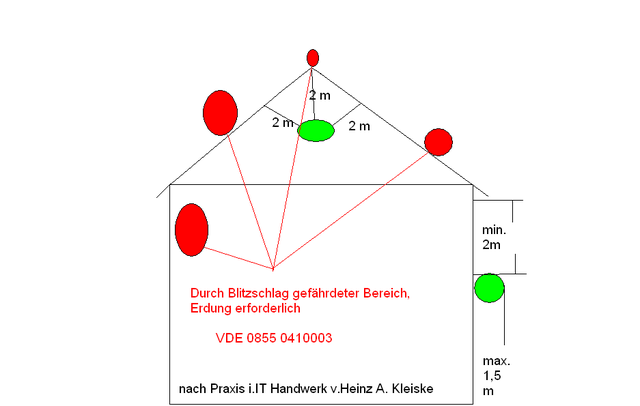 Ok, also wie ich das verstanden habe gibt es einen Unterschied zwischen Erdung(Potentialausgleich) und Blitzschutz. Befindet sich der Mast mit Antenne im "roten Bereich" muss ein Blitzschutz her.
