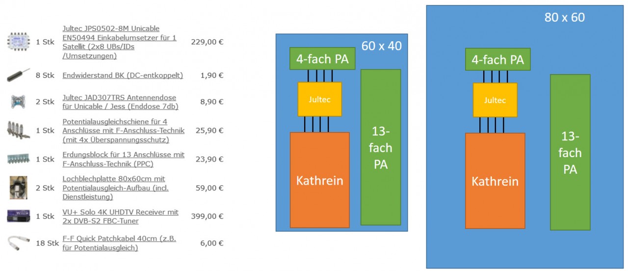Damit dies funktioniert muss ich also neben den Receivern noch im Technikraum einen Multischalter für JESS/Unicable kaufen und kann dann den alten Multischalter verkaufen.