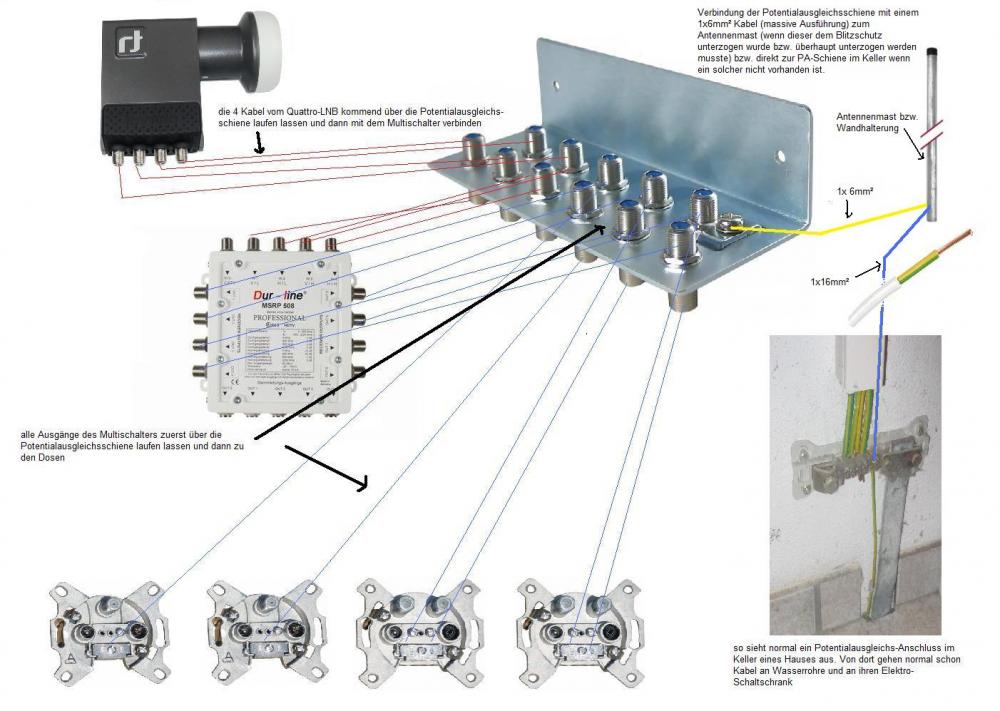 Erdung Satellitenanlage / Antennenmast + Potentialausgleich