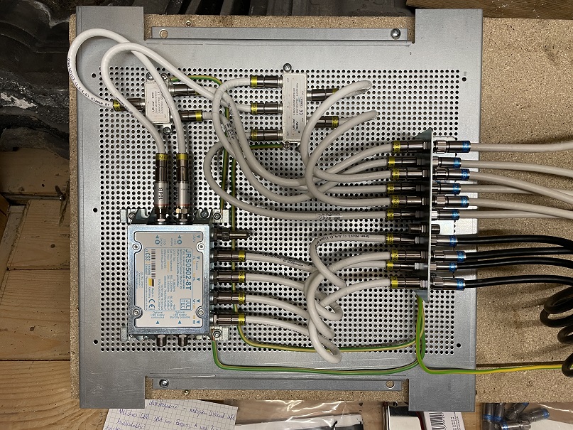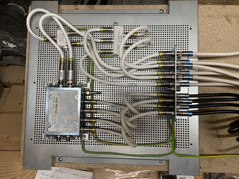 Auf diesen sehe ich das sie den Mast-nahen Potentialausgleich direkt vor den Multischalter geschraubt haben ... da gehört der nicht hin, der gehört direkt dorthin wo die Koaxkabel von den LNBs kommend das erste Mal ins Haus eintreten.