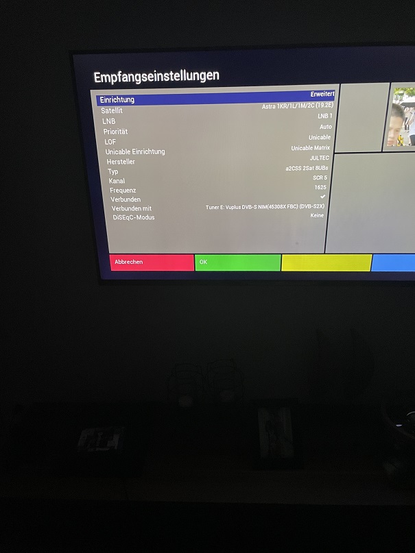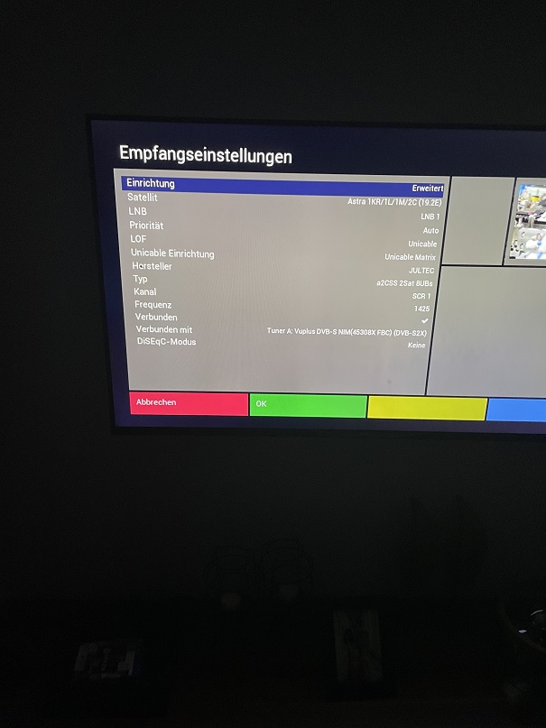 Bruce hat geschrieben: 9. Juni 2021 09:55Hier habe ich jetzt nur bei Tuner A die Einstellungen vorgenommen, Astra = LNB1 & Hotbird = LNB2, .....