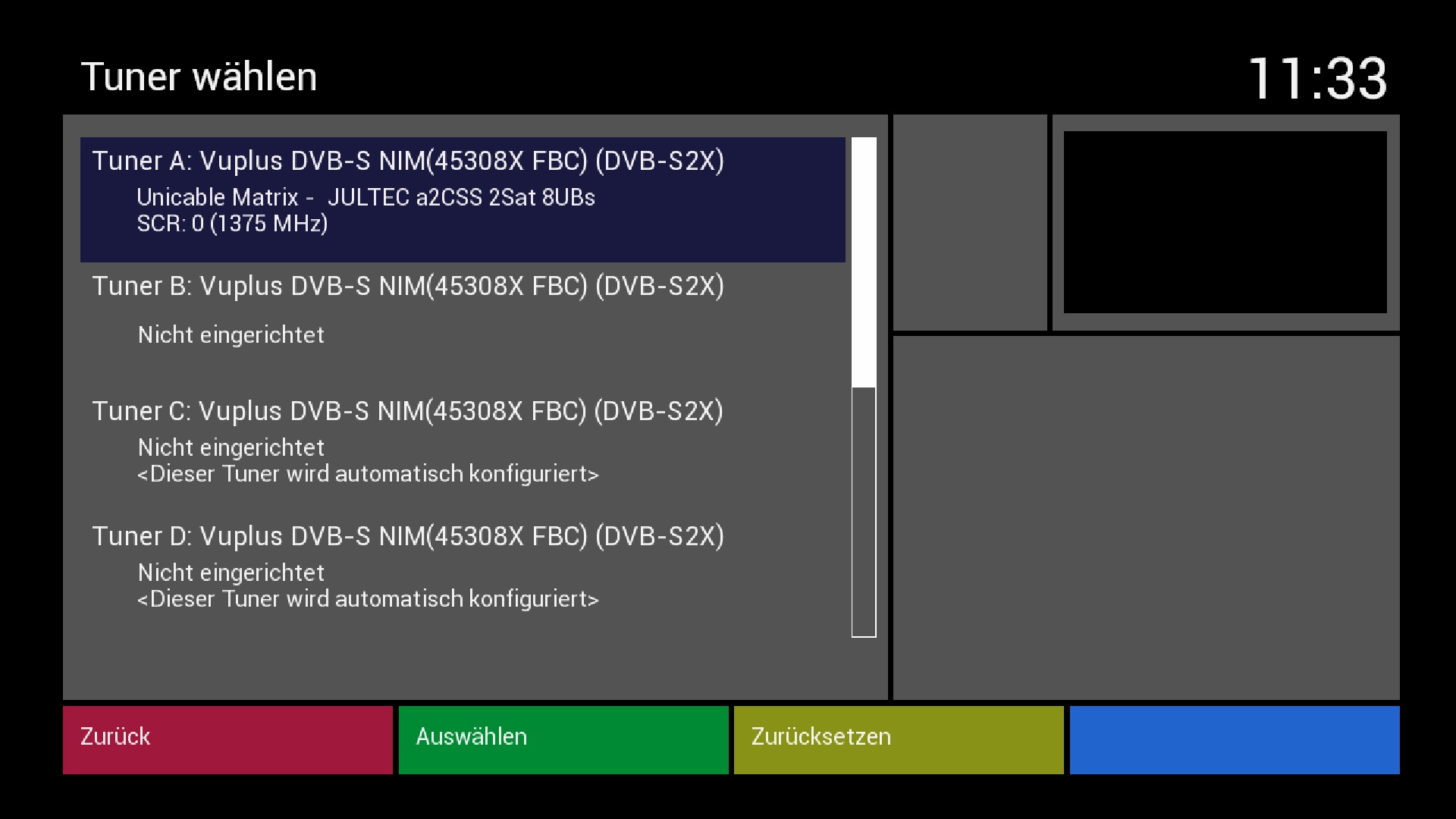 Da sehe ich immer noch das sie TunerB und folgende konfiguriert haben .. hatte doch jetzt mehrmals geschrieben NUR den TunerA konfigurieren und erst wenn dann alles geht die anderen auch einstellen bzw. überhaupt erst aktiv schalten.
