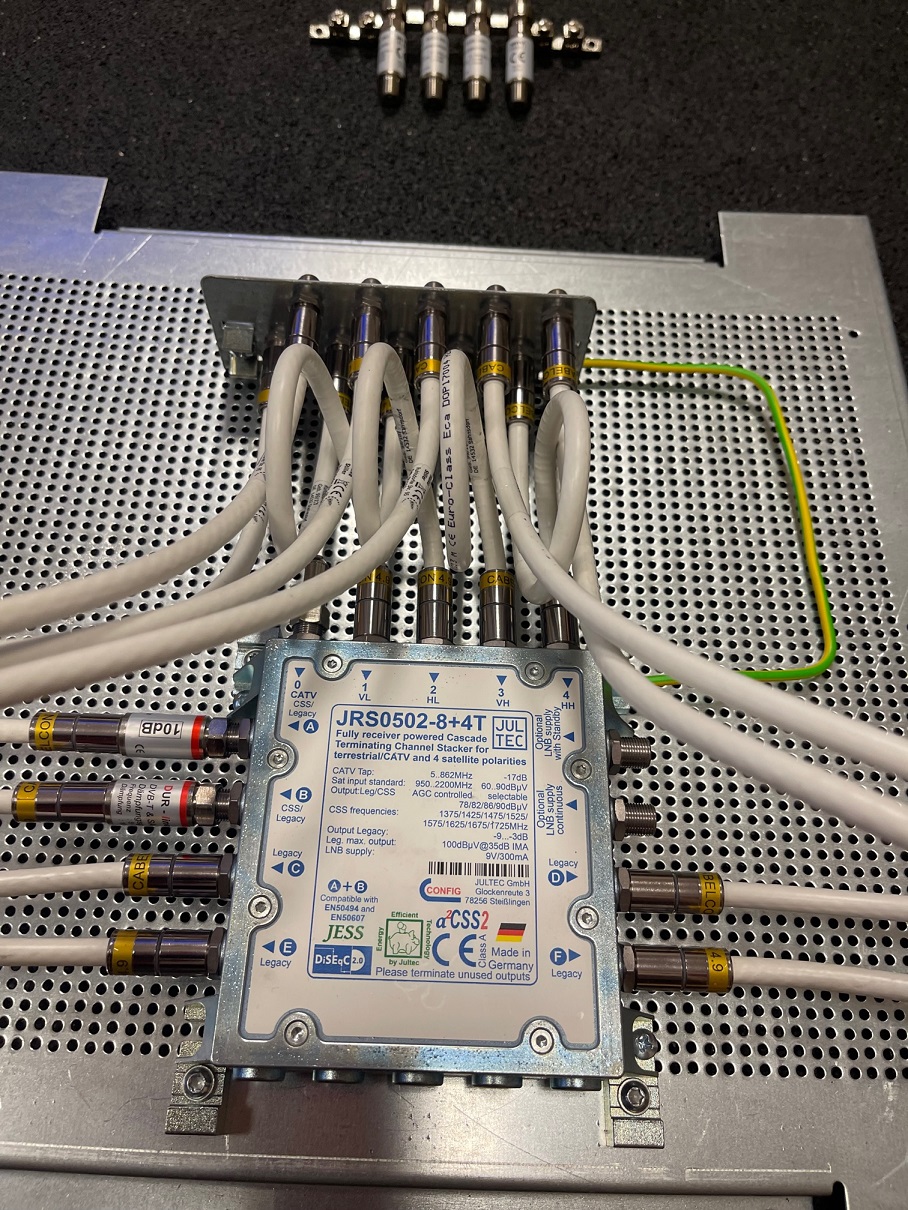 Füge ich hinzu, wenn ich beim JRS0502-8+4T bleibe. Beim JRS0502-4+4T bräuchte ich die dann nicht, da der Ausganspegel nur 78 dBuV ist?techno-com hat geschrieben: 2. Dezember 2021 12:22Fehlen 2x Dämpfungsglied 10db für die Einkabel-Ausgänge (CSS-Ausg#nge) für die Pegelanpassung...