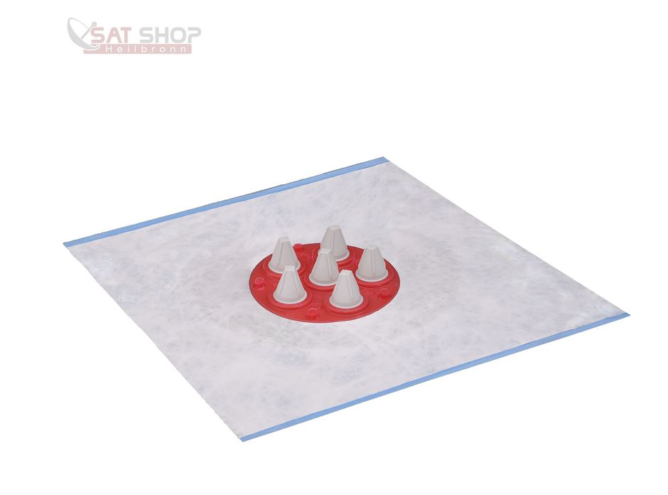 Einfach dadurch alle 8 Kabel führen, das Teil ist etwas dehnfänig das es gehen sollte. Und dann schneidet man von der eh schon benötigten Klebemanschette 3-5cm ab und klebt diese oben drum um das dicht zu machen dann (der Rest der Klebemanschette reicht dann für die Abdichtung der Gummi-Mastmanschette hin zum Antennenmast, die Klebemanschette ist super lang