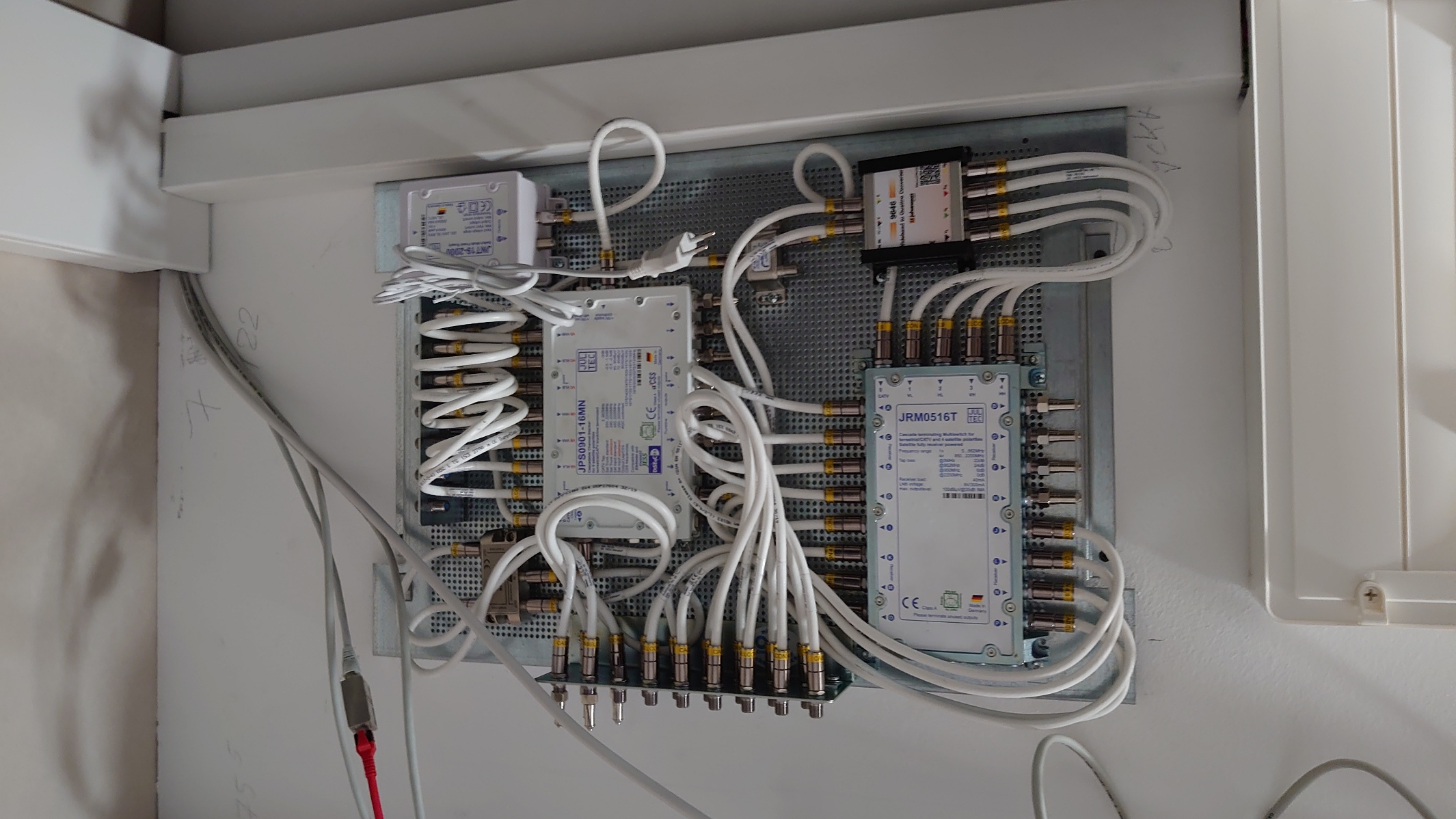 8 sind es ja alleine am Eingang kommend von den LNBs ... und dann haben wir noch 20 Ausgänge wo ja auch Kabel weg gehen auf die Kabel in die Hausverteilung. Natürlich auch dort passende Stecker dann ran.