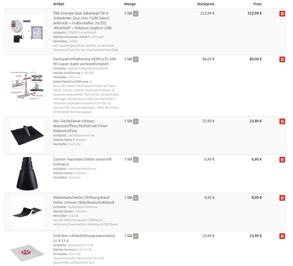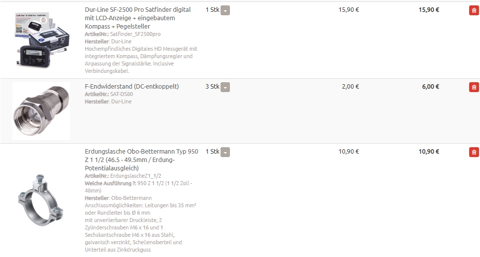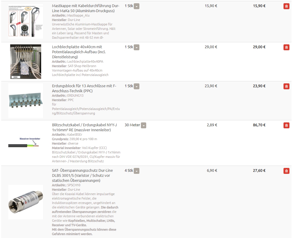 Ein Angebot (Warenkorb/Kostenvoranschlag) von der Blitzschutzfirma hatte ich ja bereits, allerdings keine Alternative rein für die Satellitenanlage.