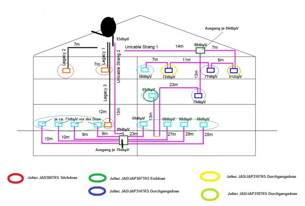 Alle Kabel bis auf den Unicable Strang 1 sind neue Peissner Kabel 120dB.