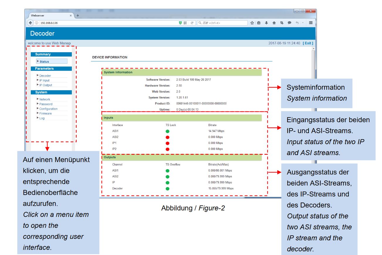 Eingang / Input IP 2x IP (MPTS/SPTS, 100M/1000M Ethernet RJ45, UDP-Protokoll / UDP protocol, Unicast/multicast)