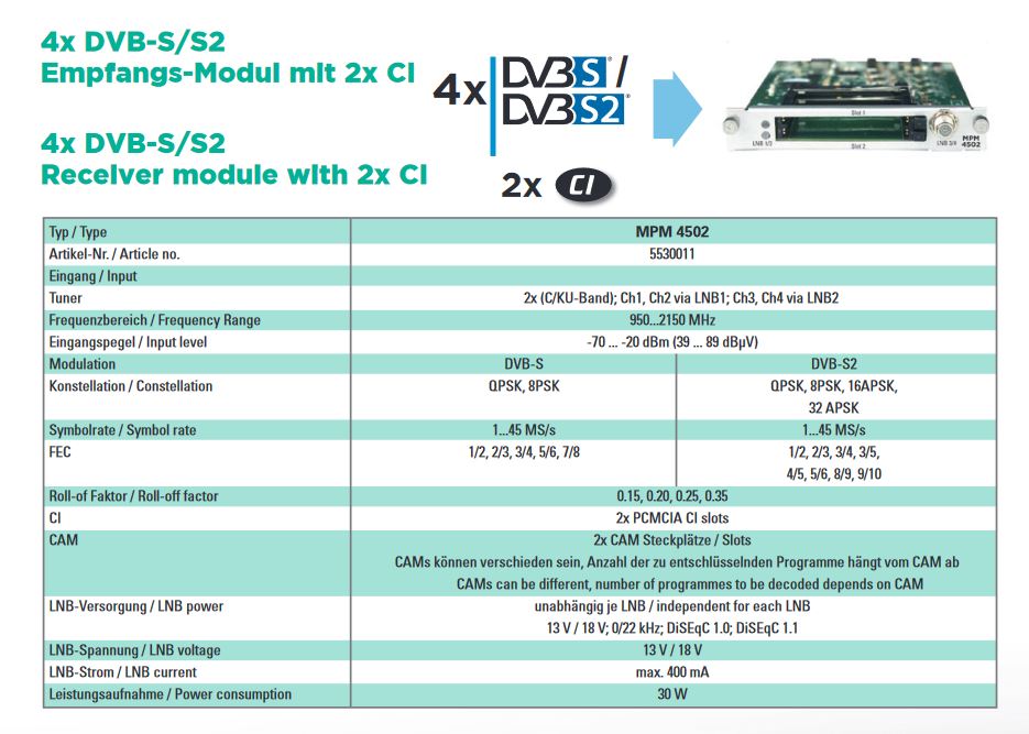 MPM 4502 4x DVB-S/S2 Empfangs-Modul mit 2 x CI