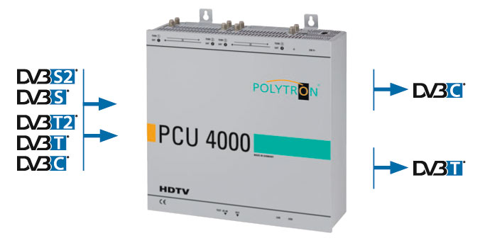 Polytron PCU 4111 = DVB-C Umsetzung / Polytron PCU 4121 = DVB-T Umsetzung / Polytron PCU 4141 = DVB-S Umsetzung)