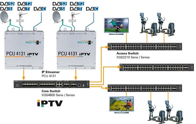 Die Kopfstelle PCU 4131 wandelt die empfangenen DVB-Signale in IPTV-Signale, welche im gesamten Netzwerk zur Verfügung gestellt werden können.