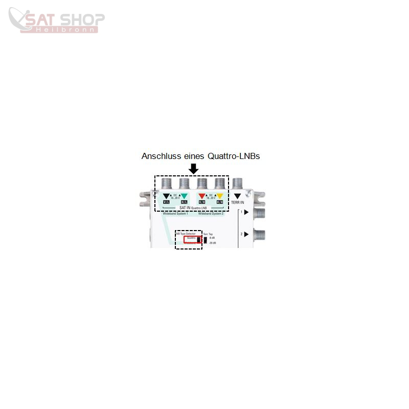 1x Quattro-LNB am Eingang (Schalterstellung „QUATTRO“)