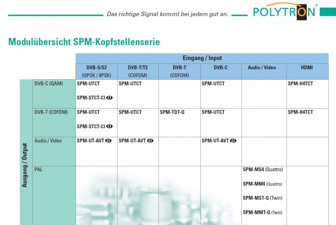 SPM 10 C-PAL s 10 x DVB-T/-T2/-C in TV mit CI stereo 1 x SPM 2000 LAN, 5 x SPM-T2CAVT, 5 x SPM-MST-Q