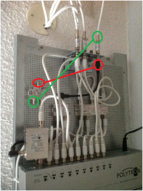 Wir haben eine Doppelhaushälfte mit Schüssel und Quattro LNB, die erste Dose ist im Dach=Gästezimmer.
