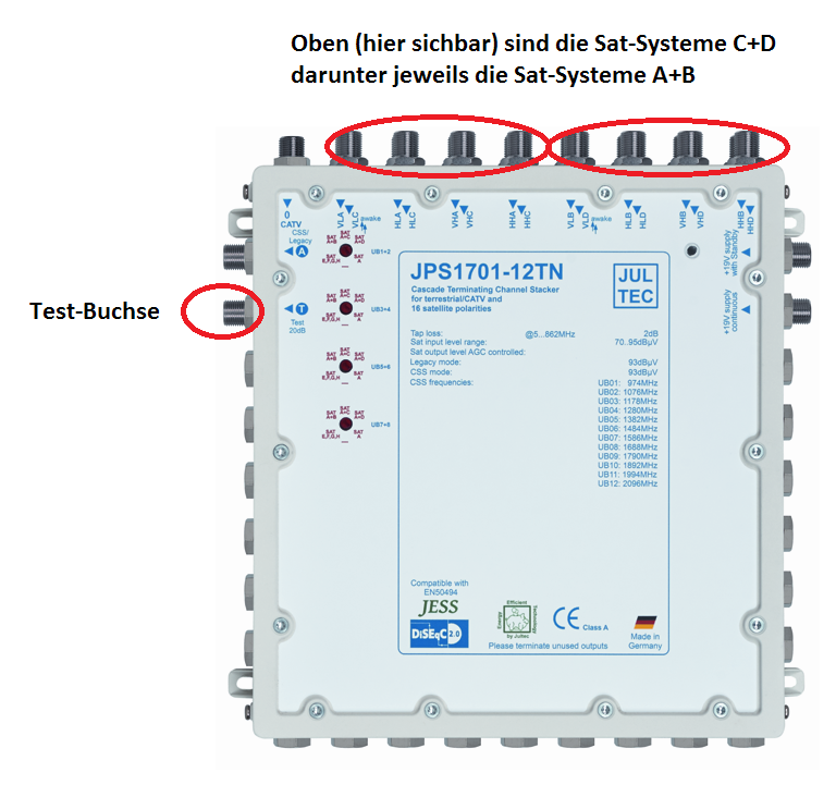Problem mit Jultec JPS1701-12TN JESS EN50607 Multischalter 4 Satelliten