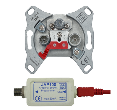 JULTEC JAP3xxTRS programmierbare Antennendose für Unicable = EN50494 und für Jess (mit Schutzschaltung für Fehlprogrammierung/-belegung/ -einstellung)