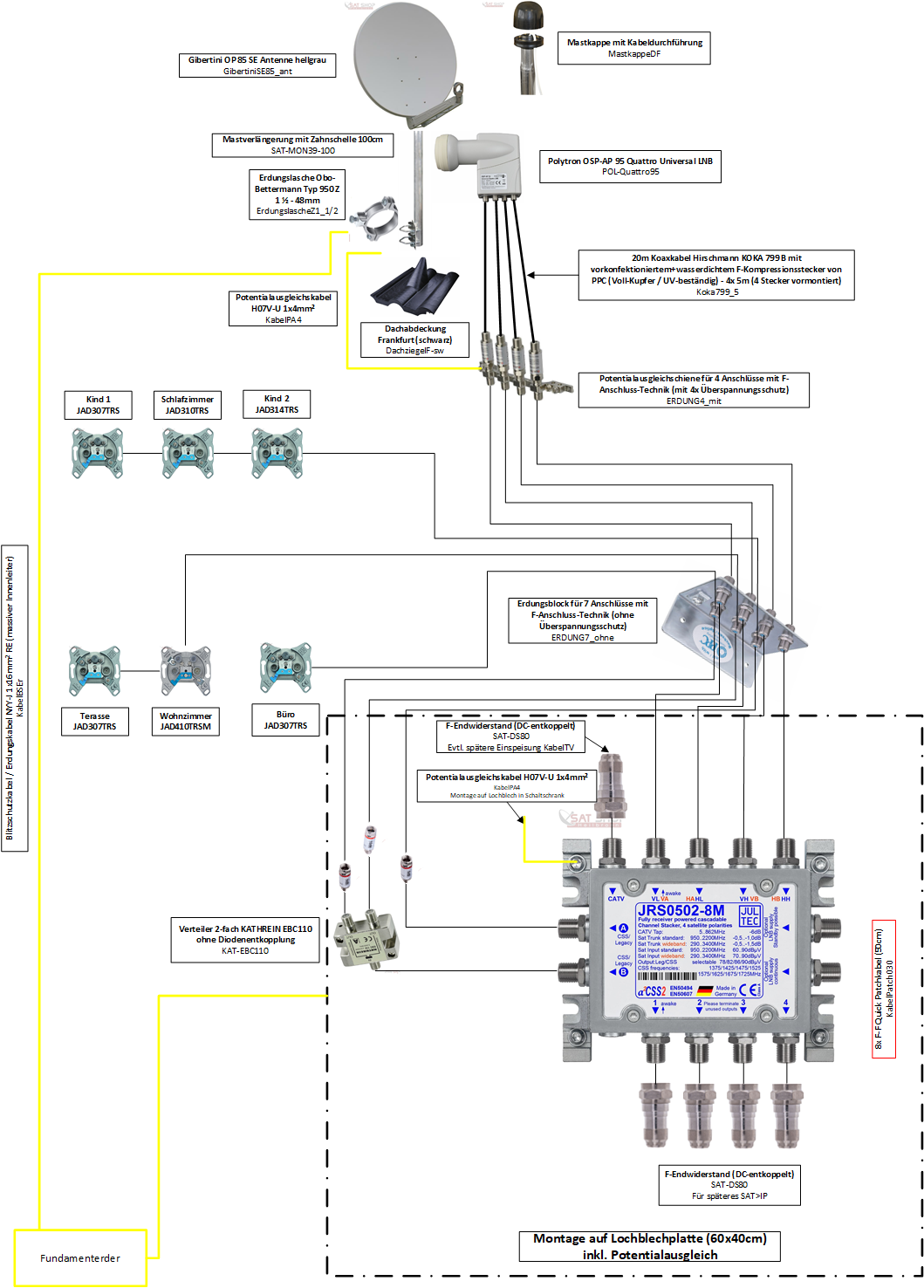 nachdem wir ein EFH gekauft haben und dies bereits am entkernen sind, ist es nun an der Zeit die Planung unserer neuen SAT Anlage voranzutreiben. Die vorhandene SAT Anlage wird komplett entfernt. Ich habe schon einige Beträge gelesen aber so 100% vertraut mit der ganzen Thematik bin ich noch nicht :1143 . Dennoch habe ich mich an die Planung gewagt und möchte hierzu gerne Rückmeldung erhalten um etwaige Fehler frühzeitig korrigieren zu können
