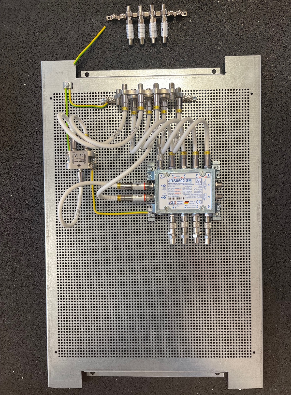 JultecJRS0502-8M_Vormontage_Potentialausgleich_Lochblechplatte_Verteiler_Pegelanpassung_Kaskadenschalter.jpg