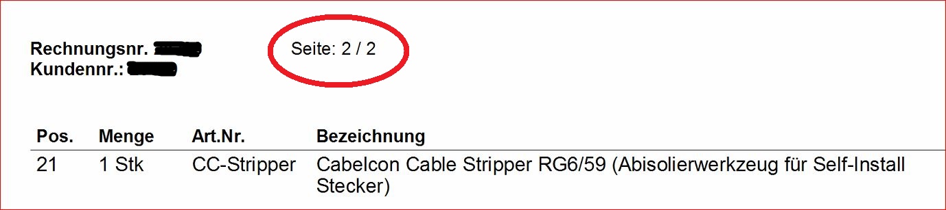 Der Cabelcon Abisolierer steht sowohl auf der Rechnung als auch auf dem Lieferschein jeweils auf Seite 2, ist also aufgeführt ............